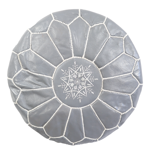 Sold outMoroccan Leather Pouffe - Grey