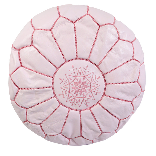 Moroccan Leather Pouffe - Pink