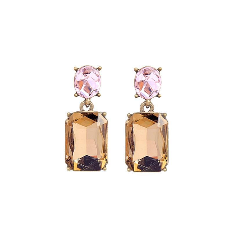 Oval twin gem glass earrings in amber & pink